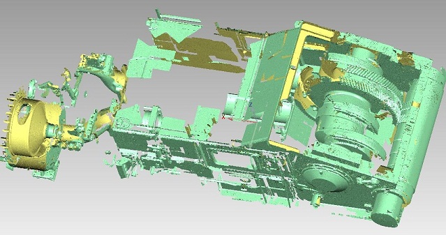 某大型矿业生产厂商,需要对生产设备部分易损件进行扫描逆向工程。被测样件为一台生产线上一大型隔膜泵,包含近千个零件。主要的曲轴与齿轮等连接件,要求精度高。本项目采用关节臂激光扫描结合蓝光摄影测量,保障整个泵体的精度。部分精度要求特别高的产品用LDI Surveyor高精度三维激光扫描系统完成。完成样件扫描后,SGKS负责完成CAD建模并出二维加工图纸。