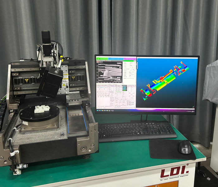 - 线激光多角度/多测头自动化扫描检测模块(软硬件),结合多轴机构实现高速高精度三维光学扫描测量(兼容2D测量)