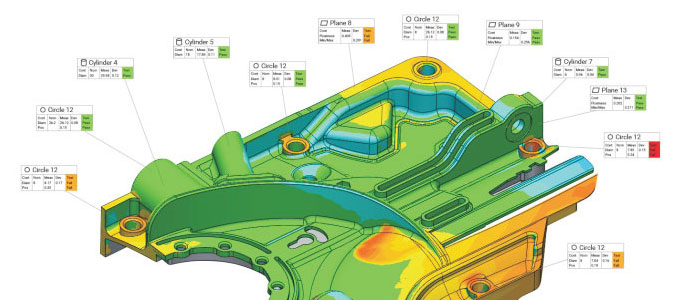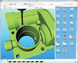 ARCO-OMi 测量软件具有所有几何要素的测量功能,包括:点、线、面、圆、球、柱、锥、圆锥、方槽等;也具备所有几何关系的计算评价功能,包括:相交、投影、距离、角度、形状公差、位置公差等。通过选配三维激光扫描测头,可以实现点云检测。